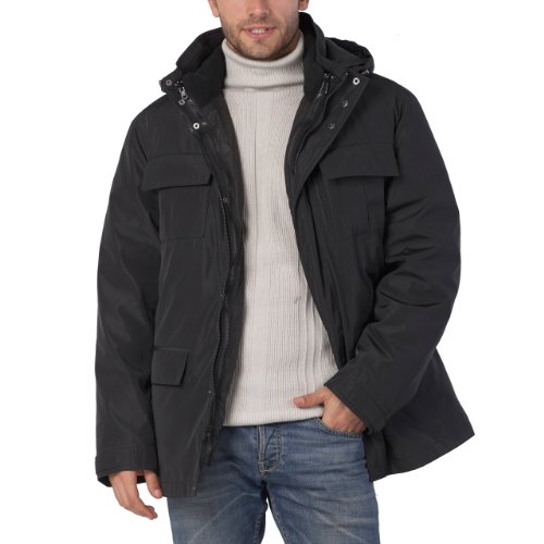 BGSD Men's Hooded Top Coat with Removable Down Coat - Black Medium