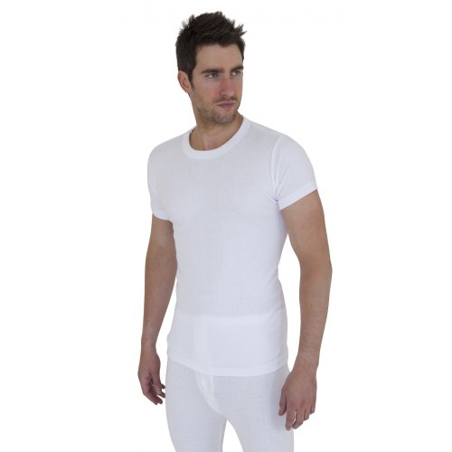 FLOSO Mens Thermal Underwear Short Sleeve T-Shirt Vest Top (Standard Range) (Chest: 32-34ins (Small)) (White)