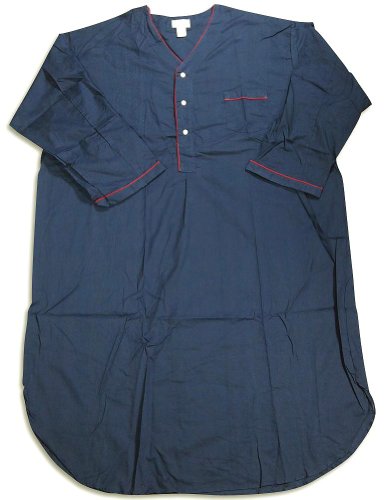 Private Label - Big Mens Long Sleeve Broadcloth Nightshirt, Navy Blue, 2 Button Henley Neckline with Piping Trim, Breast Pocket, Shirttail Hem, Approximately 48 Inches from Shoulder to Hem, 55% Cotton 45% Polyester, Made In Dominican Republic, #30095 30-095